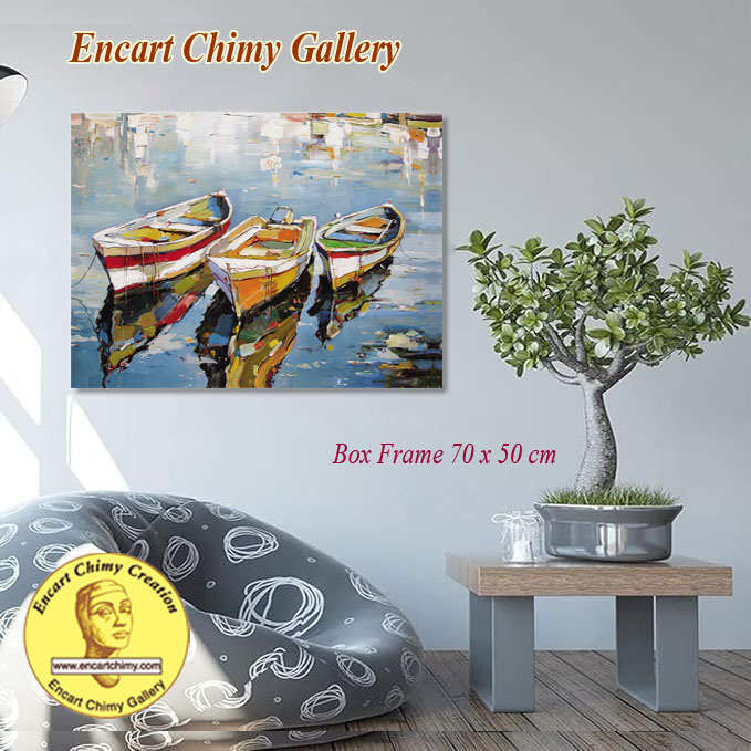 تابلوة مراكب بدون فريم مطبوع على المشمع مشدود على شاسية صندوقى مقاس 50 × 70 سم