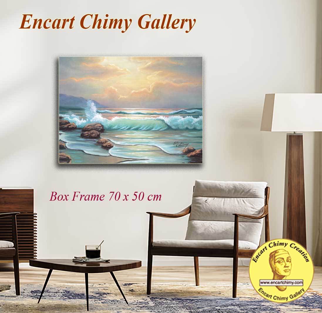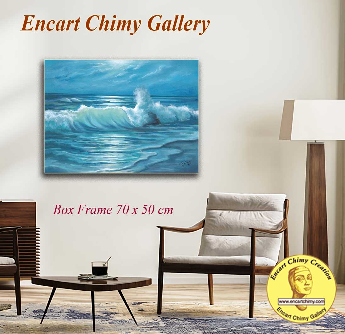 تابلوة موج البحر بدون فريم مطبوع على المشمع مشدود على شاسية صندوقى مقاس 50 × 70 سم