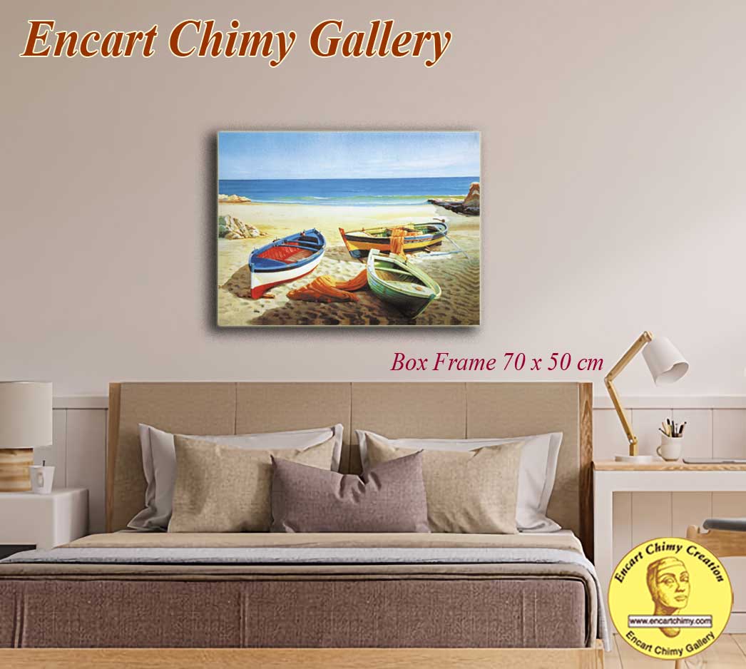 تابلوة مراكب على الشاطئ بدون فريم مطبوع على المشمع مشدود على شاسية صندوقى مقاس 50 × 70 سم