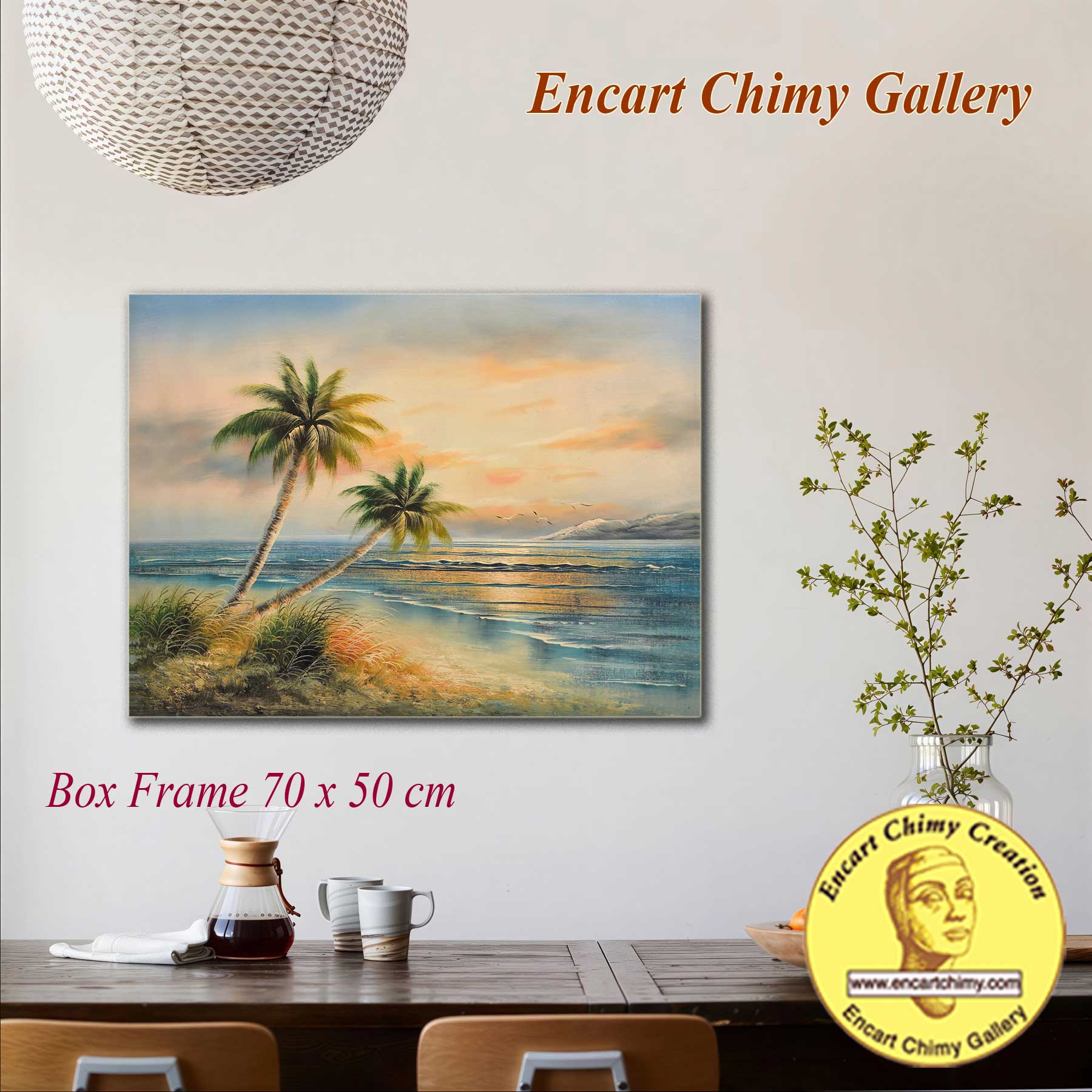 تابلوة شاطى البحر بدون فريم مطبوع على المشمع مشدود على شاسية صندوقى مقاس 50 × 70 سم