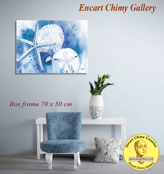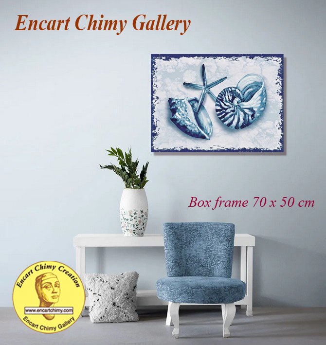 تابلوة قواقع بدون فريم مطبوع على المشمع مشدود على شاسية صندوقى مقاس 50 × 70 سم